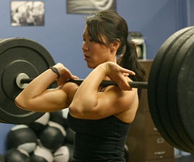 By this time the lady in question will understand the utility in lifting and enjoy it. If she didn’t have any experience with lifting, it may be a good idea to get about half a year of lifting before worrying about this transition. Even if the gal has an athletic background, mastering the intricacies of body position while lifting can take time (every girl won’t be like Eva Twardokens or Lindsay Taylor). Pre-existing musculature, strength, coordination, injuries, and skill will dictate when the transition should happen, but if there is no lifting history and athletic history is limited to high school, then don’t rush it. Remember, the idea with gals who are skeptical of lifting is to progress them slowly yet consistently. In order to shift into the snatch and clean and jerk, here are some preliminary lifts to use for a while to ease the transition.
